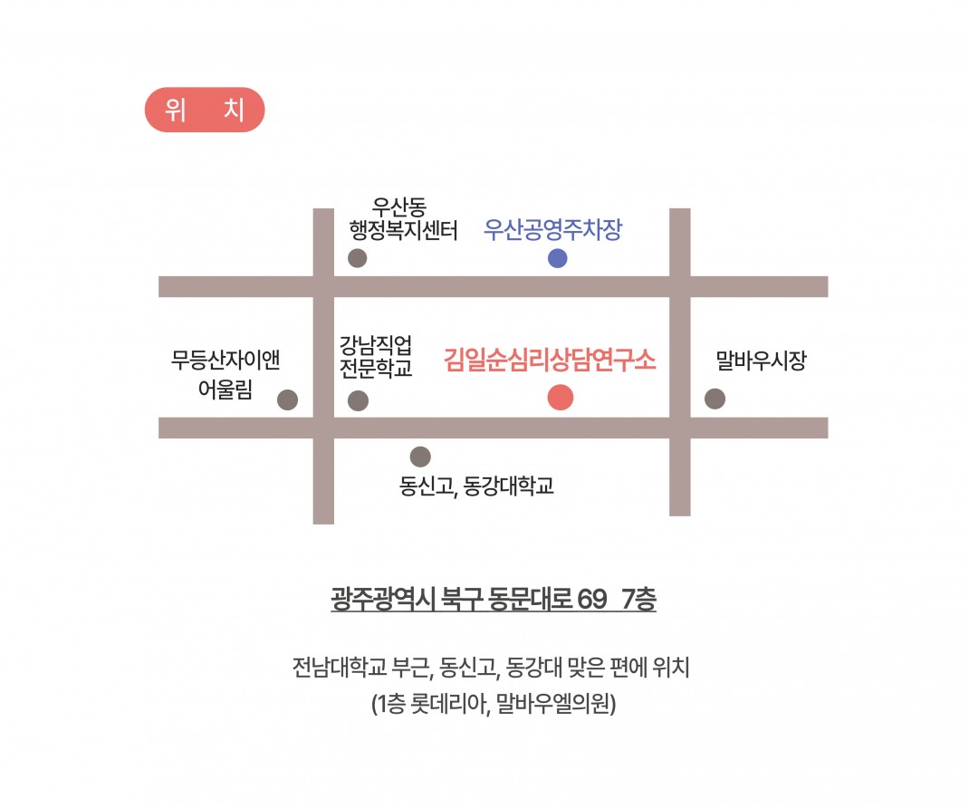 · 삼성건물과 미건테라피 사이 골목으로 들어오셔서 지하주차장 주차지정석에 주차해주세요.